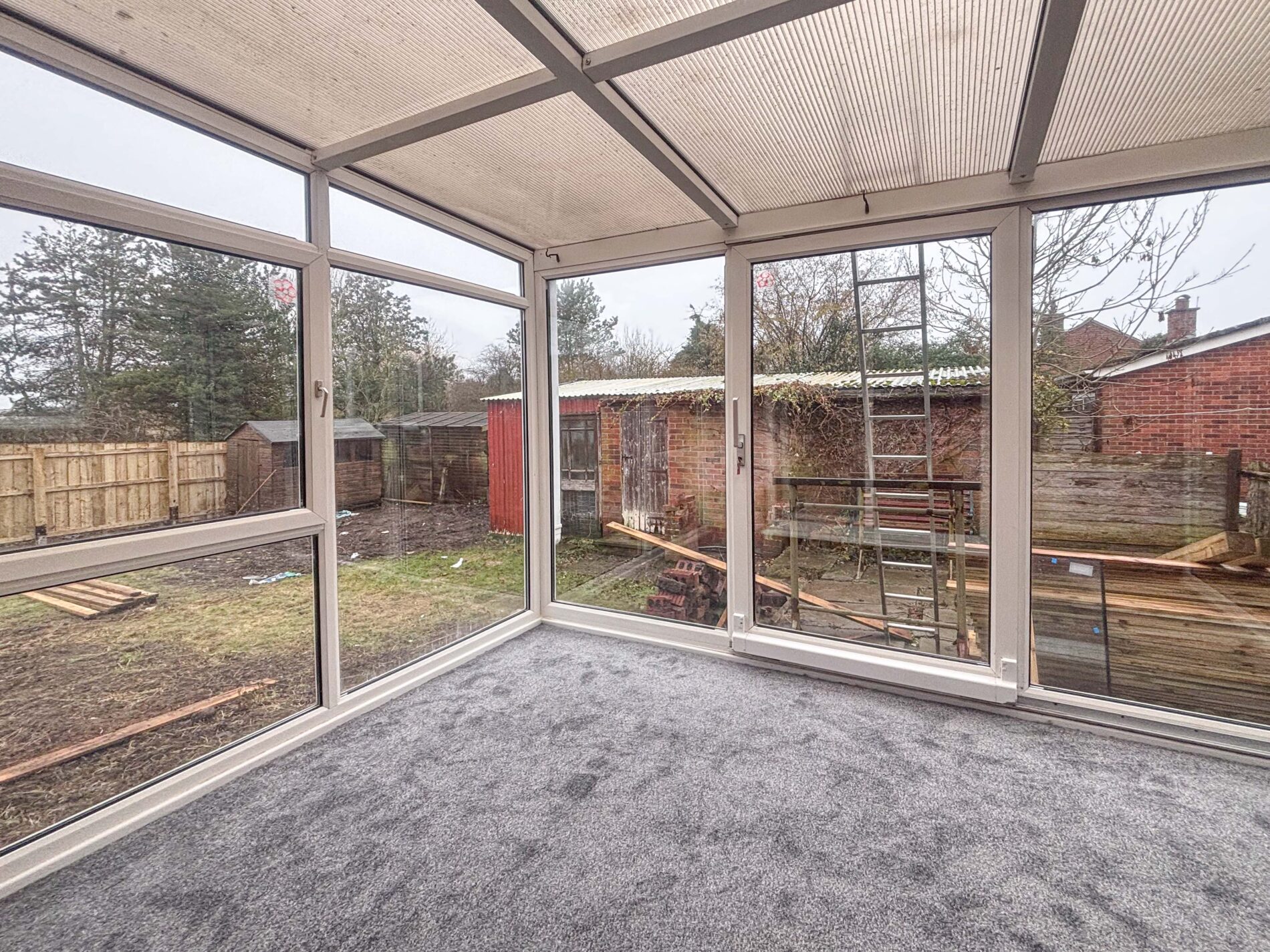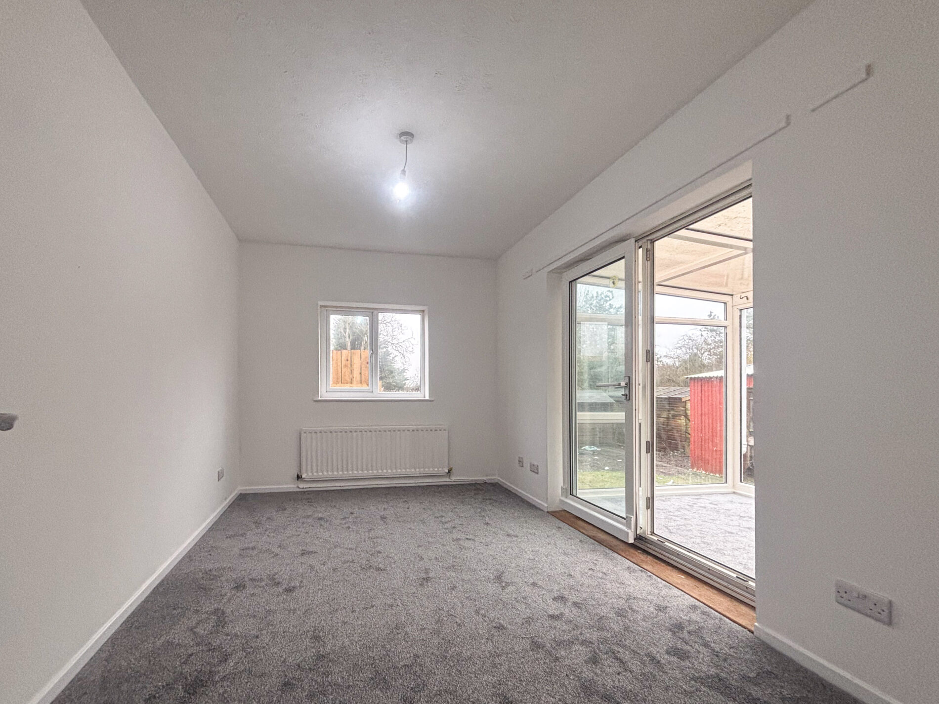 With views of the garden the conservatory has sliding doors and is freshly carpeted.