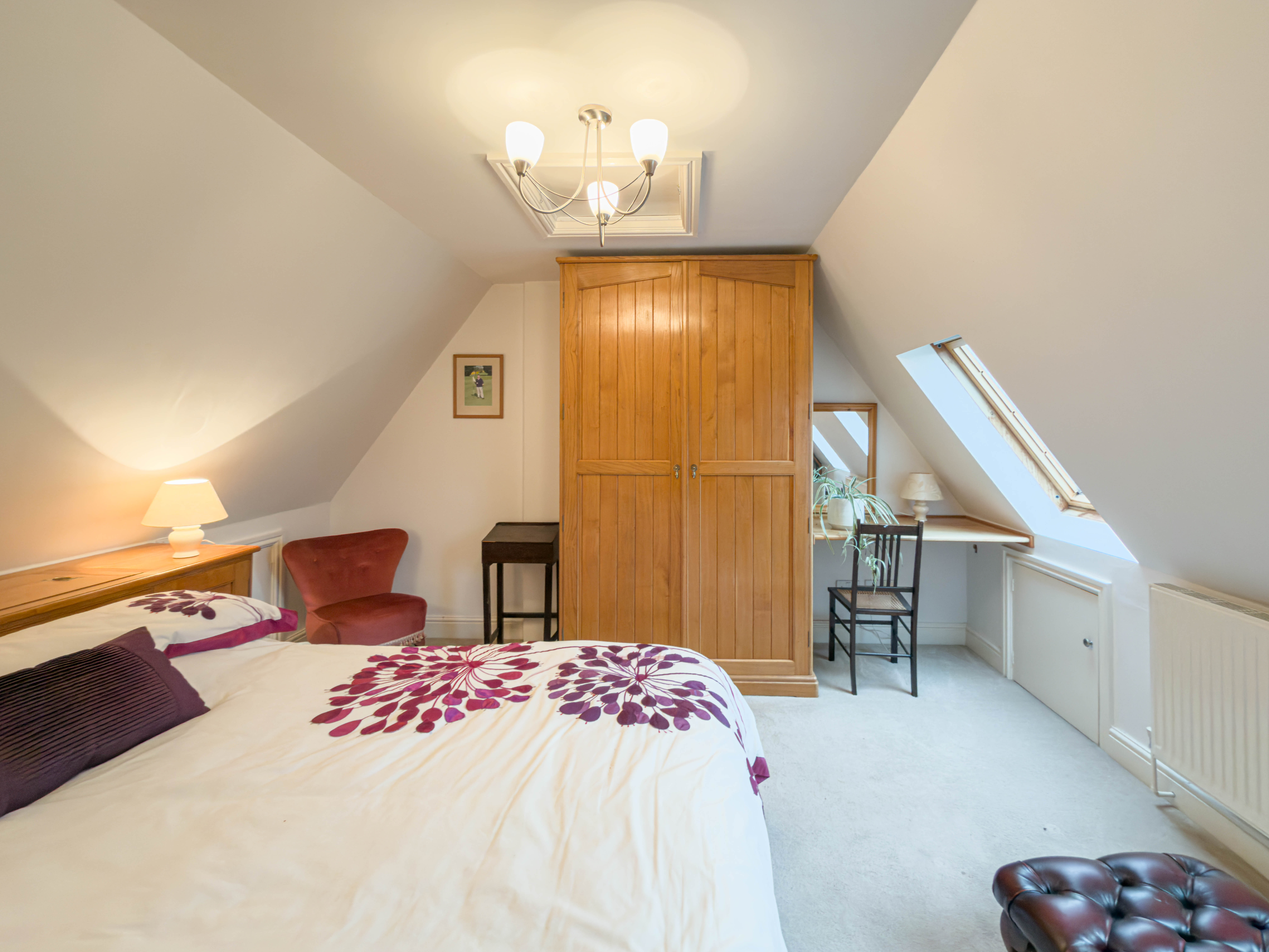 The top floor bedroom benefits from a fitted wardrobe, with a built in storage area behind the bed. Two Velux windows bringing in plenty of natural light.