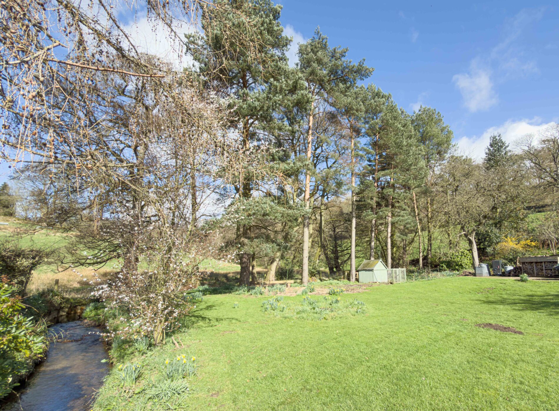 This property sits on an idyllic plot with a brook bubbling through, a mixed use garden with raised beds, luscious lawns and a continuous evolution of seasonal flowers.