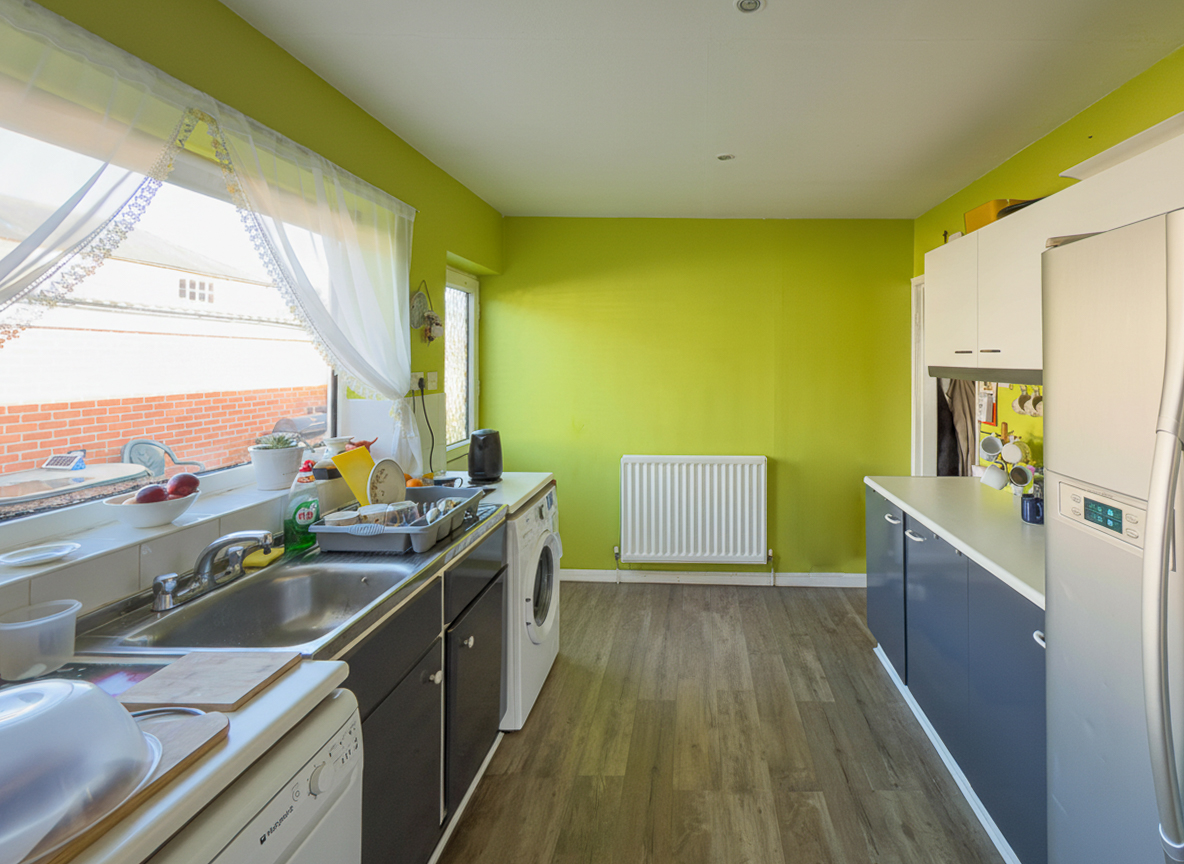 Fitted with a range of base and wall units, the kitchen houses an electric oven, washing machine and has space for a tall fridge freezer. Access is given to the side of the property which allows entry to the rear of the garage and the garden.