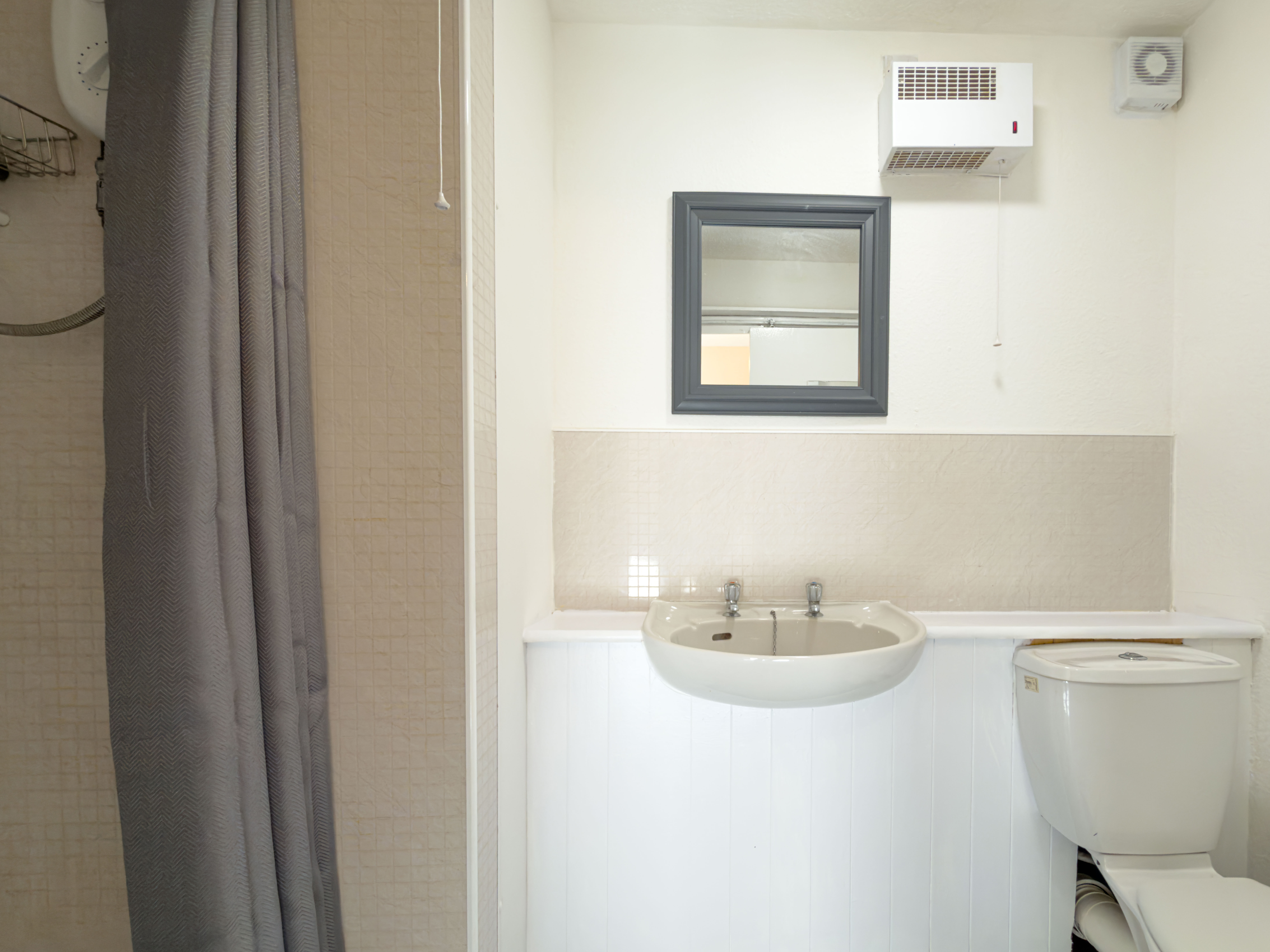 The shower room is fitted with electric shower, toilet and basin.