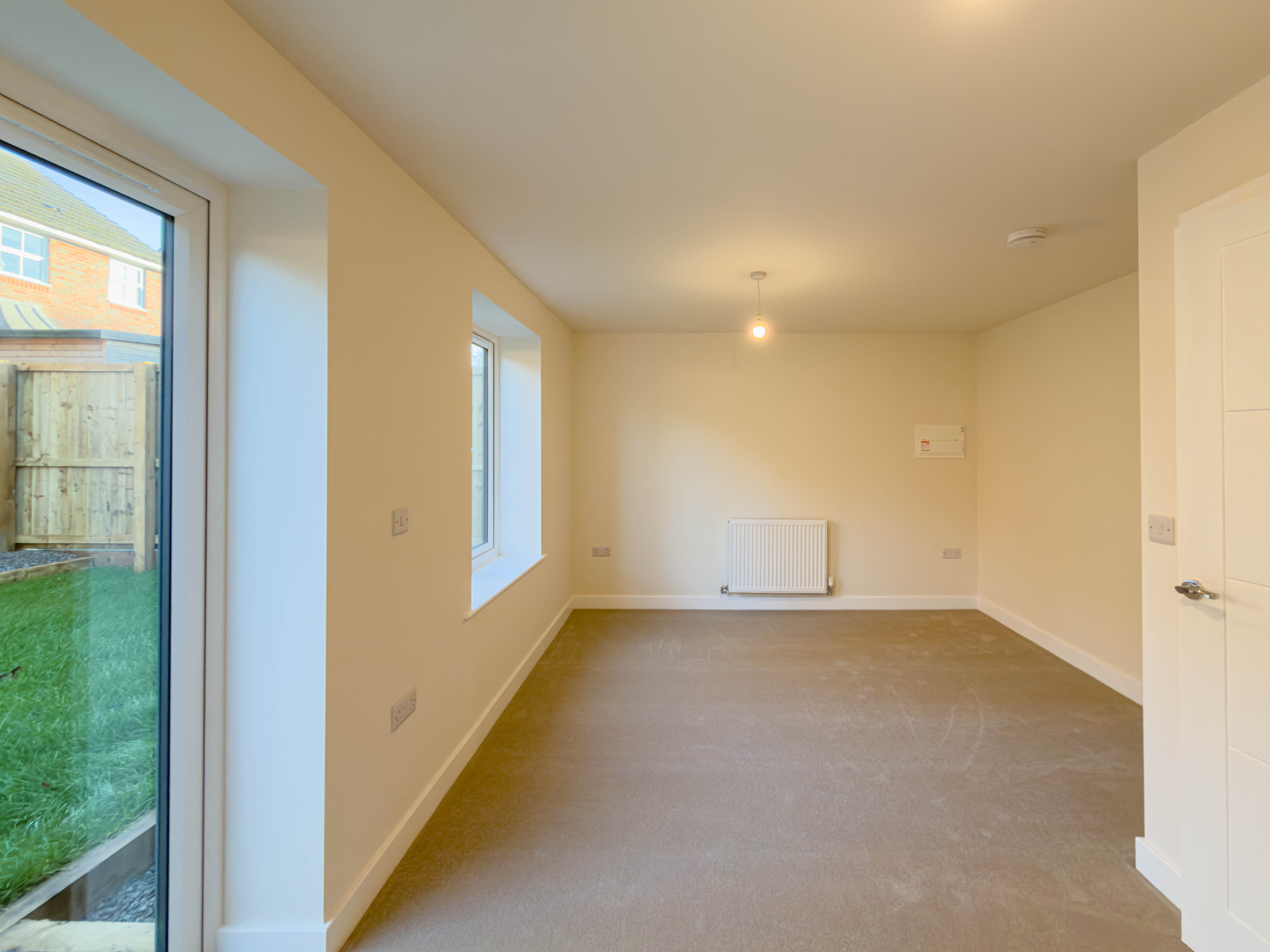 Stepping inside, you are greeted by the light and airy hall which flows seamlessly into the heart of the home. The well-appointed living room benefits from direct access to the outdoor space via elegant french doors which foster a superb connection between indoor comfort and outdoor enjoyment. The garden itself is a key highlight, featuring a meticulously maintained lawn bordered by solid wooden fencing for privacy and security. The paved patio area is perfectly positioned for al fresco dining or summer entertaining. The home’s modern finishes and energy-efficient construction promise low maintenance and cost-effective living, appealing to those seeking a contemporary residence with long-term value.