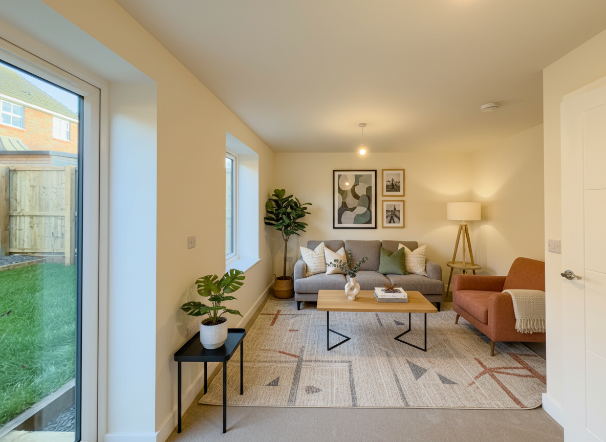 This exceptional newly built detached house offers a sophisticated blend of contemporary design and practical living, making it a standout choice for discerning buyers. The property comprises two generously sized bedrooms, a modern family bathroom, and a spacious, light-filled reception room. Boasting a striking modern brick exterior with clean architectural lines and expansive windows, the home exudes both kerb appeal and functional elegance. A private driveway and dedicated off-road parking ensure convenient and secure vehicle access, while the property’s fenced private area provides a sense of exclusivity and tranquillity. The overall layout has been intelligently designed to maximise natural light and space, creating a welcoming and airy atmosphere throughout.